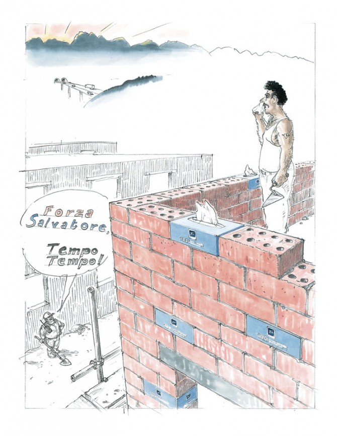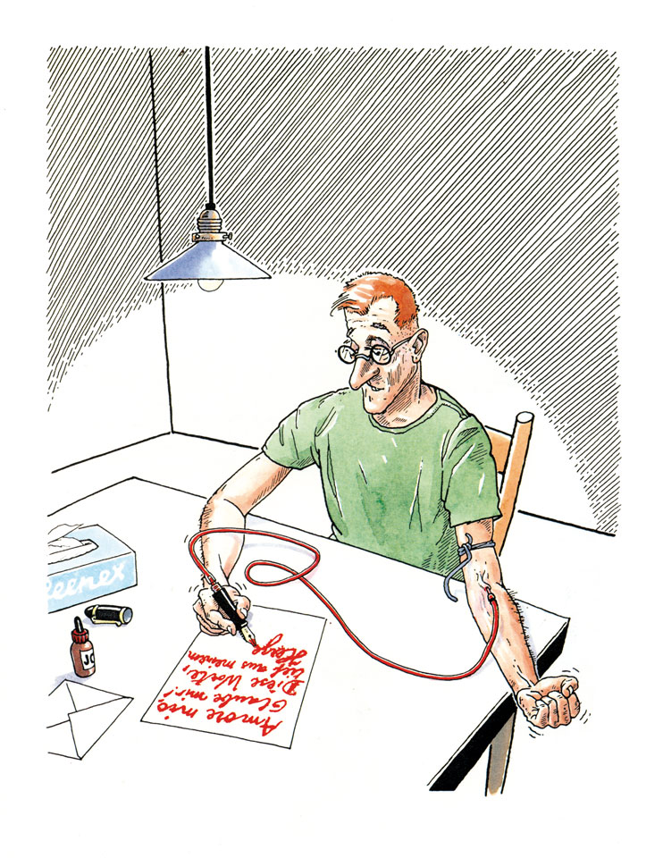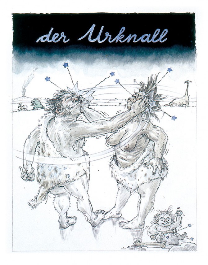 Stilwechsel: Meine TAM-Cartoons waren zunächst mit Tusche und Feder (Art Pen) auf der Basis einer Vorzeichnung ausgeführt – die Kolorierung mit Eiweiss-Lasurfarben erfolgte auf montierten Fotokopien.